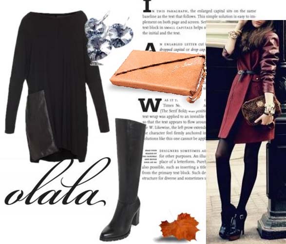 Stylizacja jesienna składa się z butów: Nessi, torebki: Joanna Kruczek, marynarki: H&M; sukienki: Bonprix; bransoletki: Venis,