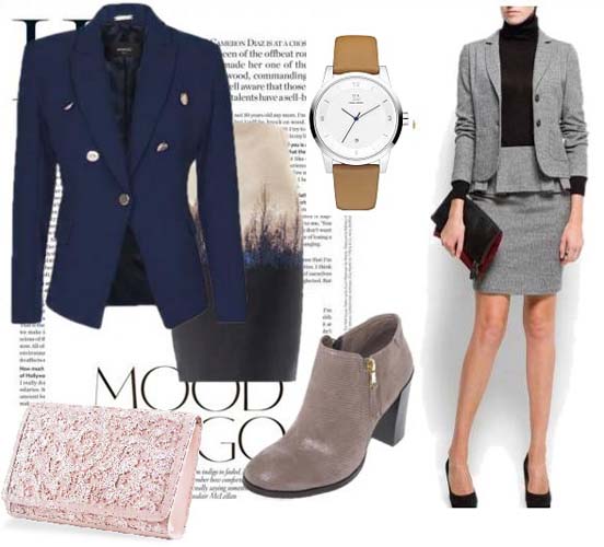 Stylizacja klasyczna składa się z butów: Nessi, torebki: Joanna Kruczek, marynarki: Massimo Dutti; spódnicy: H&M; zegarka: Danish Design.