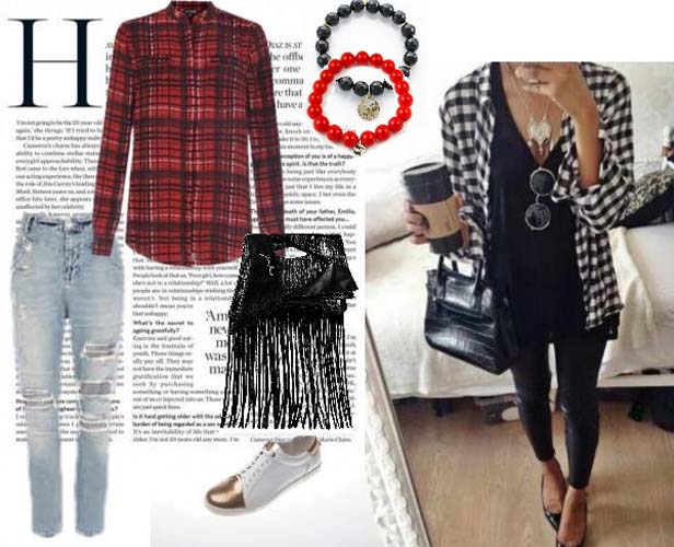 Stylizacja sportowa składa się z butów: Nessi, torebki: Joanna Kruczek, jeansów: Pull&Bear, koszuli: House, bransoletek: Venis,
