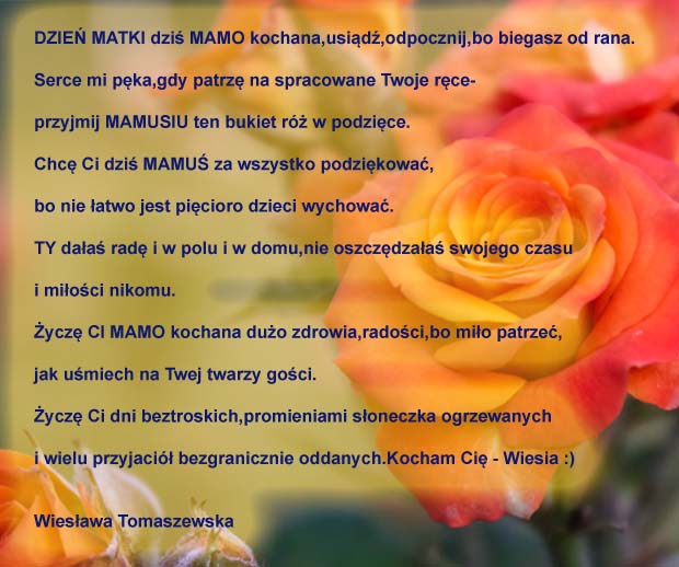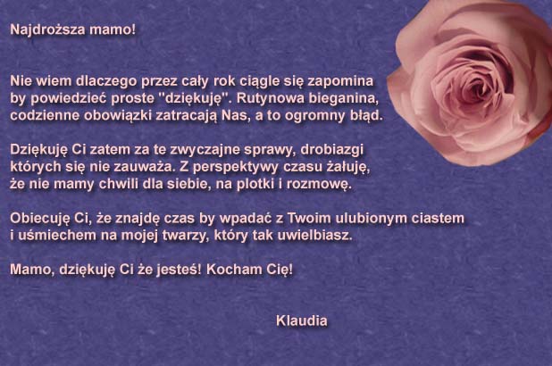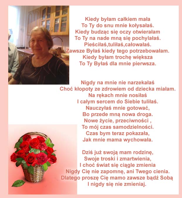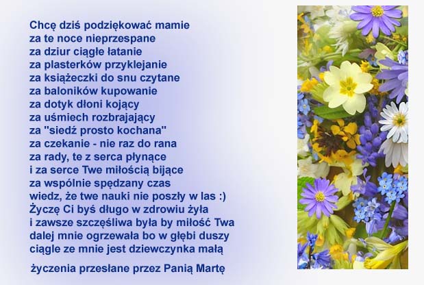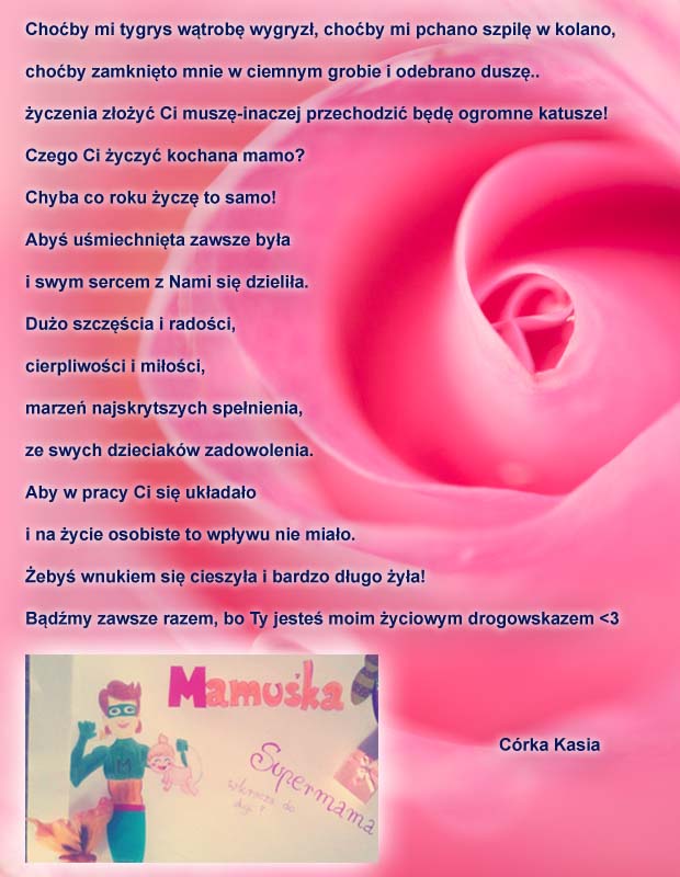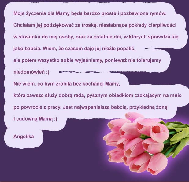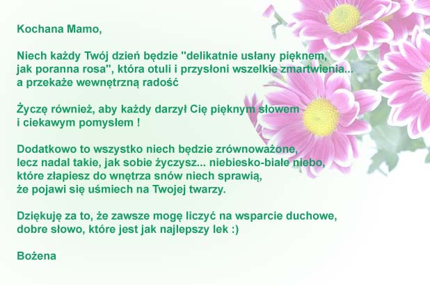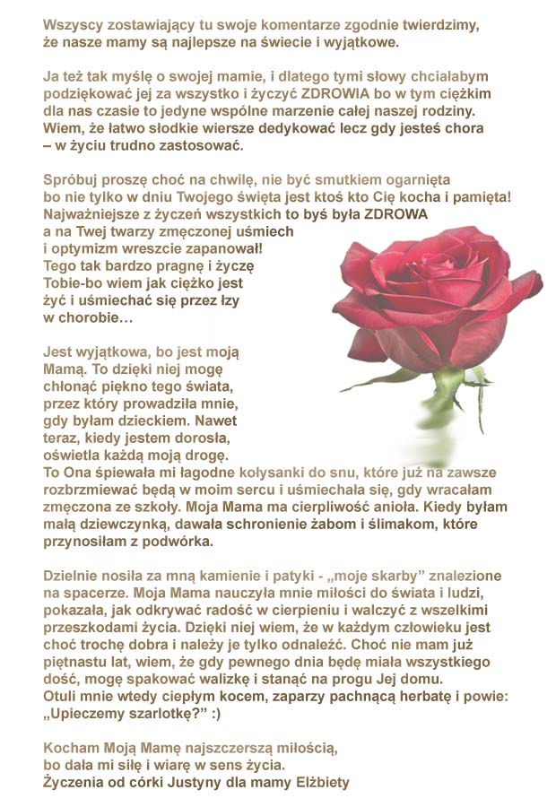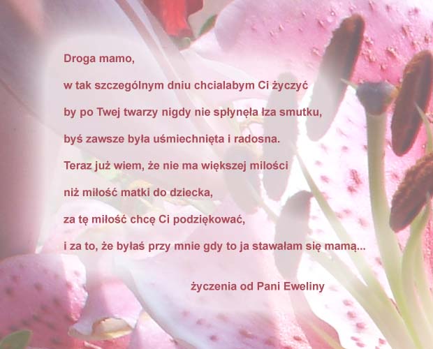 Te życzenia nadesłała do nas Pani Janina, którą serdecznie pozdrawiamy. Dla Pani i Pani Mamy firma evr?e? ufundowała olejki: Olejek Gold Argan i Olejek do twarzy Magic Rose.