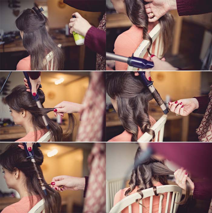 Możemy teraz przystąpić do kręcenia włosów. Używamy do tego lokówki o niezbyt dużej średnicy. Większa średnica sprawi bowiem, że otrzymamy delikatne fale, nie zaś dziewczęce loczki. Pasmo owijamy wokół lokówki i trzymamy jakieś 15-20 sekund.