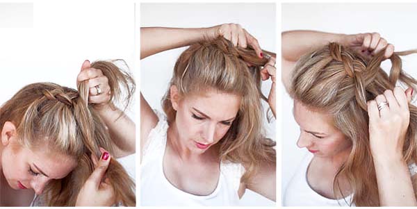 Warkocz cały czas zaplatamy wokół głowy, pamiętając, aby w odpowiednich miejscach skręcać. Włosy długie ułatwią to zadanie. Musimy pamiętać o regularnym skręcaniu, gdyż nasza korona musi mieć kształt okręgu, bądź spirali.