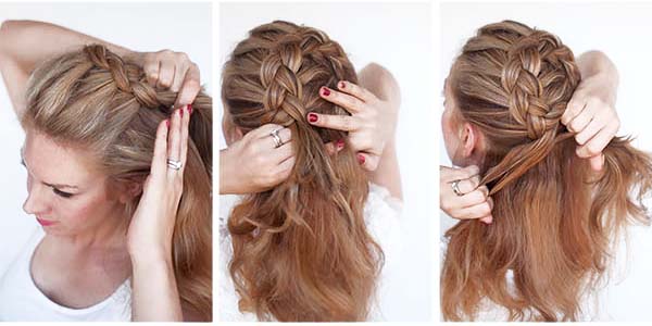 Zaczynamy plecenie warkocza za lewym uchem. Rodzaj warkocza, jak dziś robimy to warkocz duński. Kolejne pasma przeplatamy nie nad sobą, ale pod sobą. Dzięki temu warkocz będzie wypukły. Modne fryzury powinny być efektowne, nie zaś płaskie.