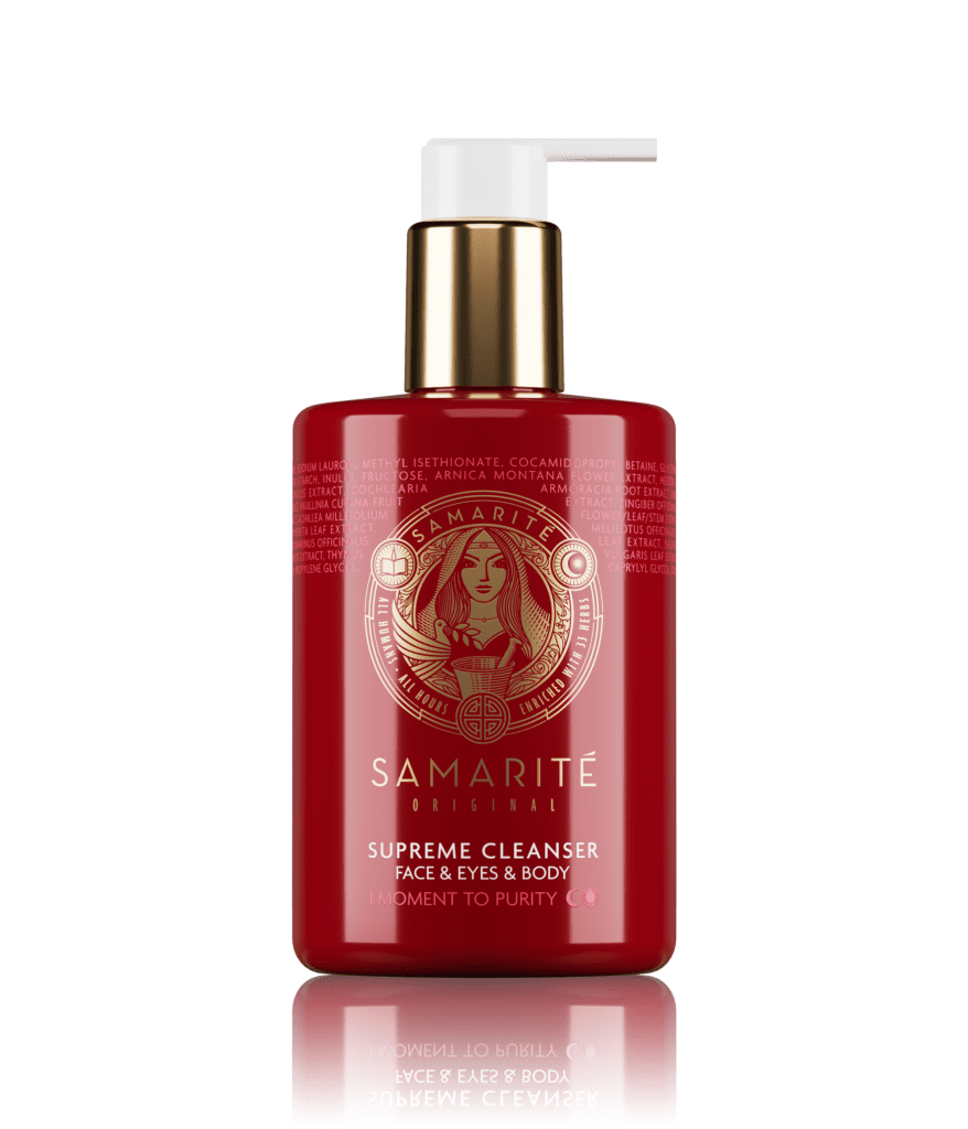 Ten innowacyjny prebiotyczny żel myjący do twarzy i ciała zawiera najdelikatniejsze związki stosowane do mycia skór dzieci oraz osób cierpiących na Atopowe Zapalenie Skóry, dzięki temu oczyszcza twarz i ciało w sposób niezwykle skuteczny, a zarazem łagodny, dbając jednocześnie o komfort i nawilżenie. Jak podkreśla Wioletta Kaniewska – Receptura Supreme Cleanser oparta jest w 92% na składnikach pochodzenia roślinnego i zawiera aż 25 naturalnych ekstraktów. Dodatkowo siła prebiotyków sprzyja mikroflorze, co sprawia,że żel wspiera mikrobiom skóry. Dokładnie oczyszczona skóra, zdrowa flora bakteryjna oraz szerokie działanie wyciągów ziołowych – to właśnie te właściwości powodują, że prebiotyczny żel Samarité idealnie sprawdza się w oczyszczaniu skór wrażliwych, atopowych oraz skłonnych do stanów zapalnych i trądziku. Supreme Cleanser ma aż 350 doz i jest niezwykle wydajny – już jedna pompka wystarcza do dokładnego oczyszczenia skóry twarzy i zmycia makijażu, niewiele więcej do umycia całego ciała. Co istotne, zwłaszcza w przypadku osób uczulonych na detergenty, można go wykorzystać jako łagodny preparat do prania ręcznego delikatnych, jedwabnych tkanin czy bielizny.