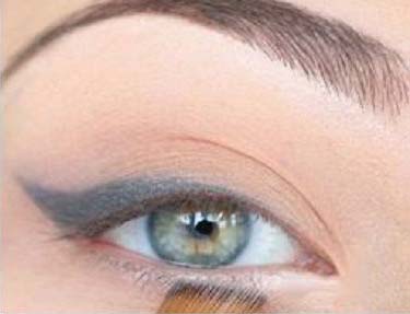 Narysowaną czarną kreskę w całości pokrywamy granatowym cieniem do powiek. W tym celu używamy skośnie ściętego pędzelka do makijażu.