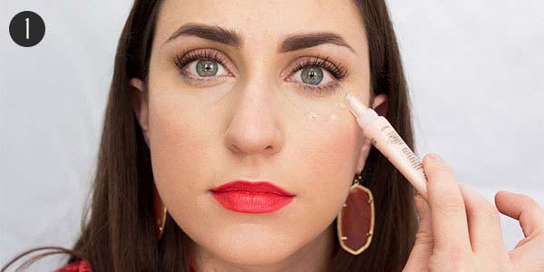 Zaczynamy od nawilżenia skóry pod oczami. W tym celu używamy nawilżającej bazy pod makijaż oczu. Sprawdzi się również nawilżający balsam o lekkiej konsystencji. Wybrany kosmetyk nakładamy punktowo pod oczy, a następnie delikatnie rozcieramy.