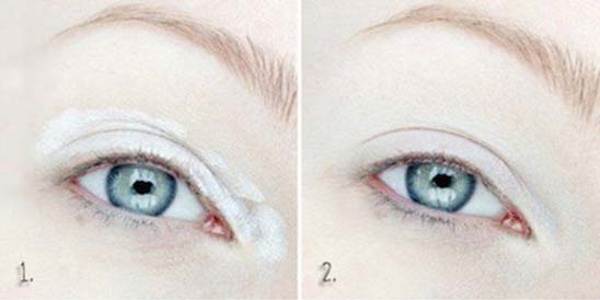 - Wykonanie makijażu zacznij od zaaplikowania na całą górną powiekę białego, perłowego cienia do powiek.