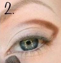 Podkreślenie załamania powieki: Na przygotowaną wcześniej powiekę (baza pod cienie lub zestaw korektor + puder) nanieś średni brąz o matowym wykończeniu. Postaraj się nałożyć cień precyzyjnie w kształcie litery ?V?. Konturowanie oka pozwoli nadać głębi spojrzeniu, a użycie ciepłego brązu ociepli makijaż i podbije kolor niebieskiej tęczówki.