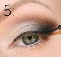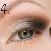 Ciemny szary cień: Ciemnym szarym cieniem podkreśl zewnętrzny kącik na powiece ruchomej oraz dolną powiekę. Pamiętaj aby zawsze łączyć obie powieki w kącikach, dzięki temu makijaż będzie pełny i estetyczny.