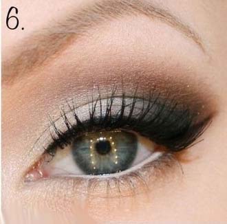 Jasny szary cień: Jasnym szarym cieniem zaznacz wewnętrzny kącik oka oraz powiekę ruchomą do połowy. Możesz także zaznaczyć wewnętrzną połowę dolnej powieki. Rozjaśnienie tego obszaru nada makijażowi lekkości i otworzy spojrzenie.