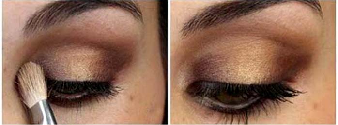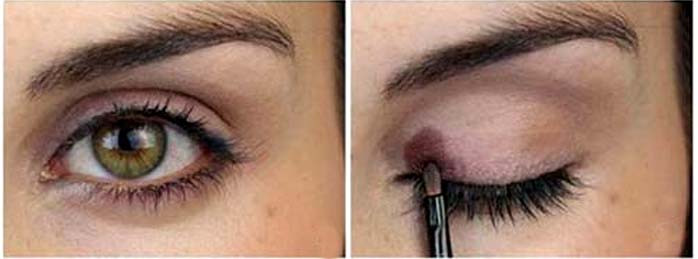 Zarysowany kształt zamaluj przy pomocy zielonego cienia. Cała powieka powinna być starannie wypełniona cieniem.