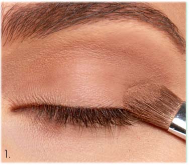 Na cała górną powiekę nakładamy cień do powiek w delikatnym odcieniu brązu. Najwięcej koloru powinno znaleźć się w zewnętrznych kącikach oczu.
