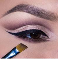 Wyraźny brąz: Czekoladowym brązem narysuj linie nieco ponad załamaniem powieki. Wykonuj precyzyjne i krótkie ruchy przy pomocy cienkiego pędzelka ściętego na skos. Będzie to linia podkreślająca Twoje załamanie.