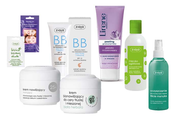 A jeśli widzisz, że twarz, szczególnie w okolicy czoła i nosa wiecznie się błyszczy i masz tendencję do wyprysków? Takie symptomy będą najprawdopodobniej oznaczały, że masz skórę mieszaną lub tłustą. Głęboko oczyszczające peelingi i żele oraz kremy o lekkich formułach będą właściwe dla Ciebie. Jeśli dodatkowo masz skłonności do zaskórniaków, krostek, Twoja skóra nie jest gładka ? wyszukaj kosmetyki do cery zanieczyszczonej, które jeszcze lepiej złuszczą naskórek, dając poczucie świeżości.