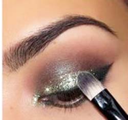 Podkreśl zieleń swoich oczu wykorzystując ciemnozielony, brokatowy cień do powiek. Połączenie błyszczącego cienia do powiek z matowym, brązowym cieniem sprawia, że oczy wyglądają hipnotyzująco.